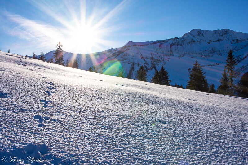 Im Dorf lag der Schnee noch etwas zaghaft, etwas höher dann schöner Pulver.